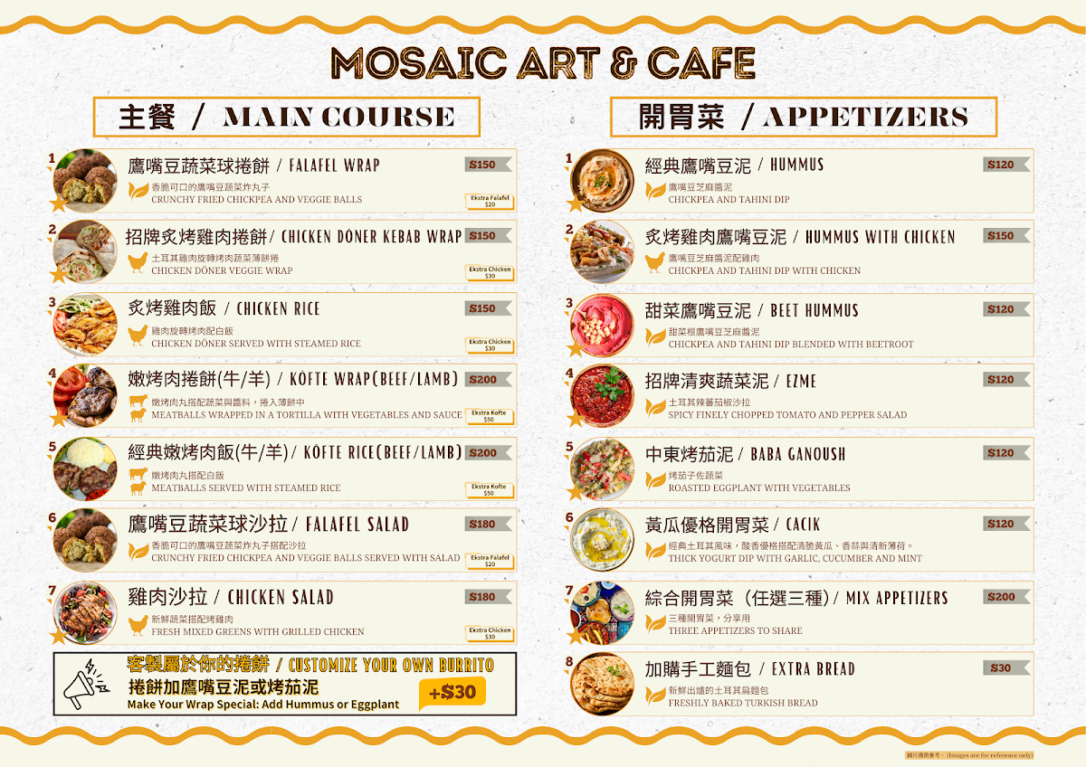 Mosaic Art & Cafe sits quietly on the edge of Taipei’s busy Yongkang Street, offering a casual spot where Turkish and Mediterranean flavors intersect with local Taipei life. This small café and eatery blends a variety of roles—part doner kebab joint, part ice cream shop, part halal restaurant—which is reflected in its modest but diverse menu and intimate setting.